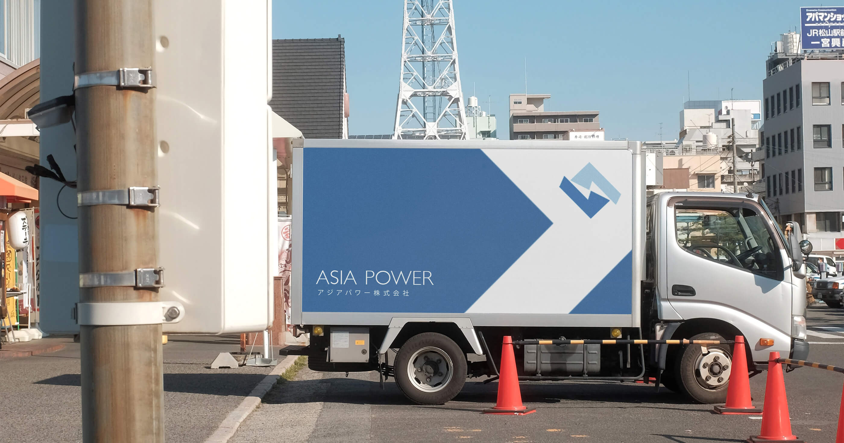 日本ASIA POWER株式會社 此客戶為太陽能環保能源為主的日本公司,執行了LOGO、VI系統和網站等相關設計。 其中在LOGO的設計上,我透過2個不同明度的藍色色塊的組合,構成出白色閃電符號, 用來象徵能源的產業特性。