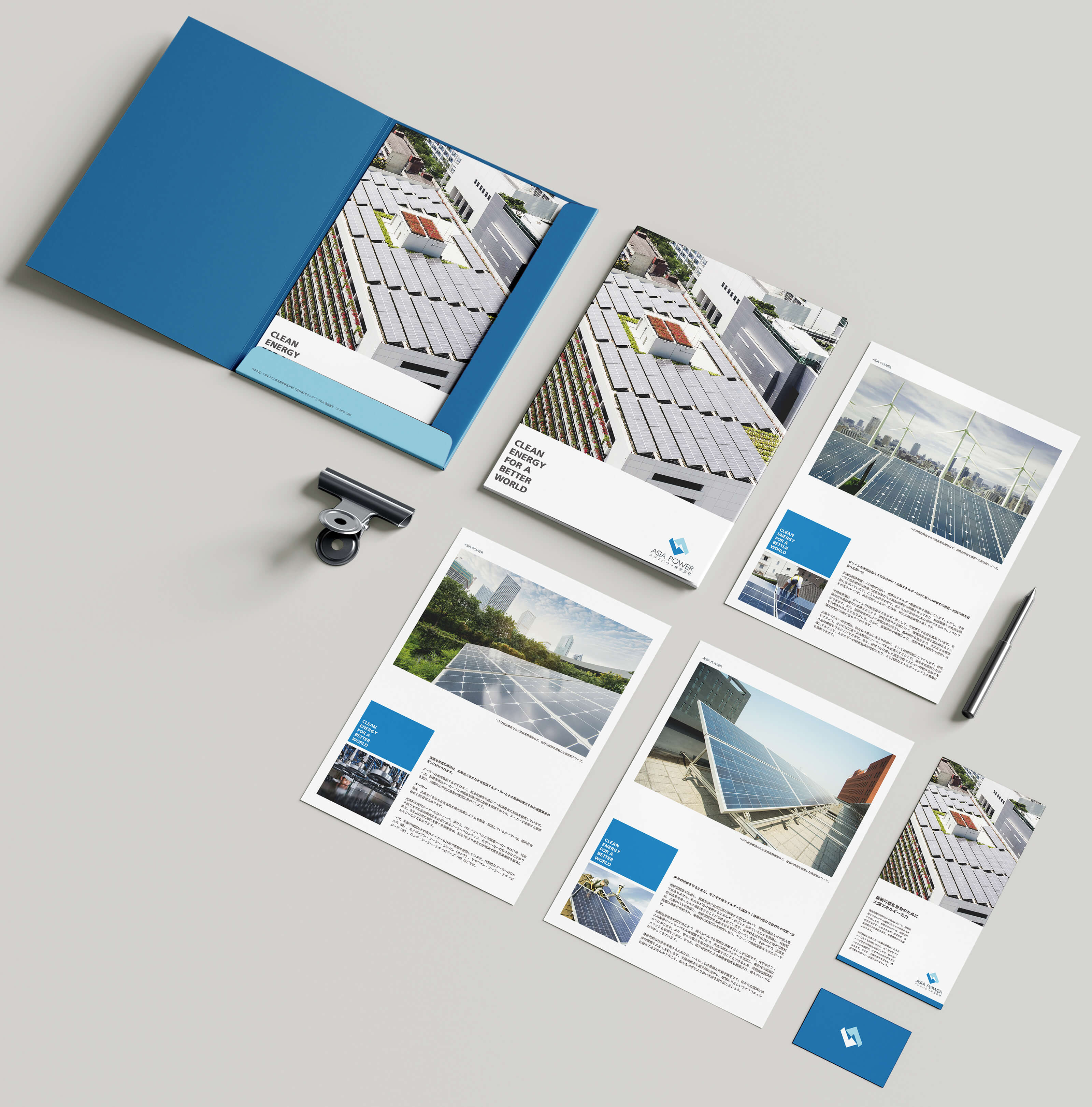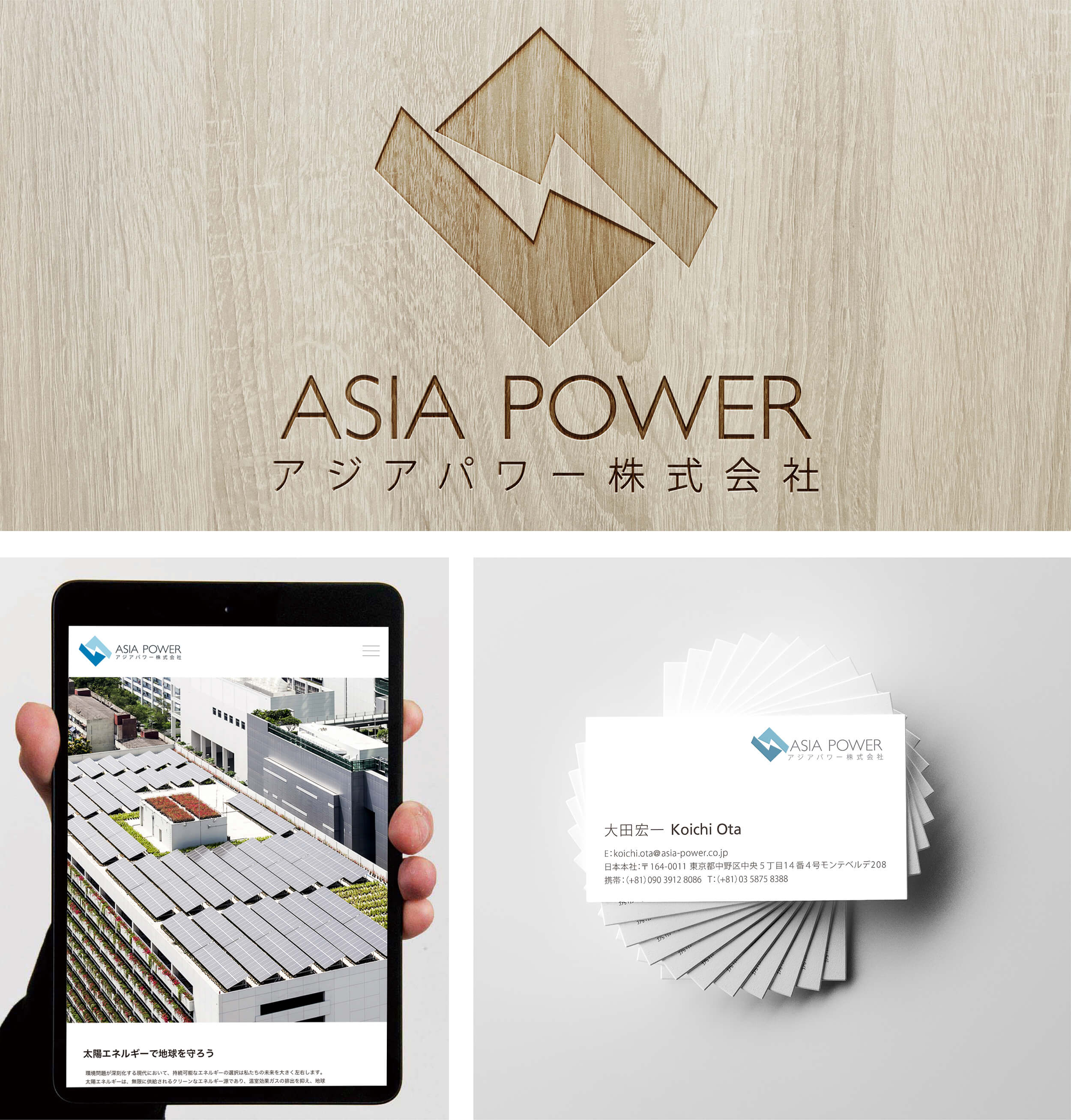 日本ASIA POWER株式會社 此客戶為太陽能環保能源為主的日本公司,執行了LOGO、VI系統和網站等相關設計。 其中在LOGO的設計上,我透過2個不同明度的藍色色塊的組合,構成出白色閃電符號, 用來象徵能源的產業特性。