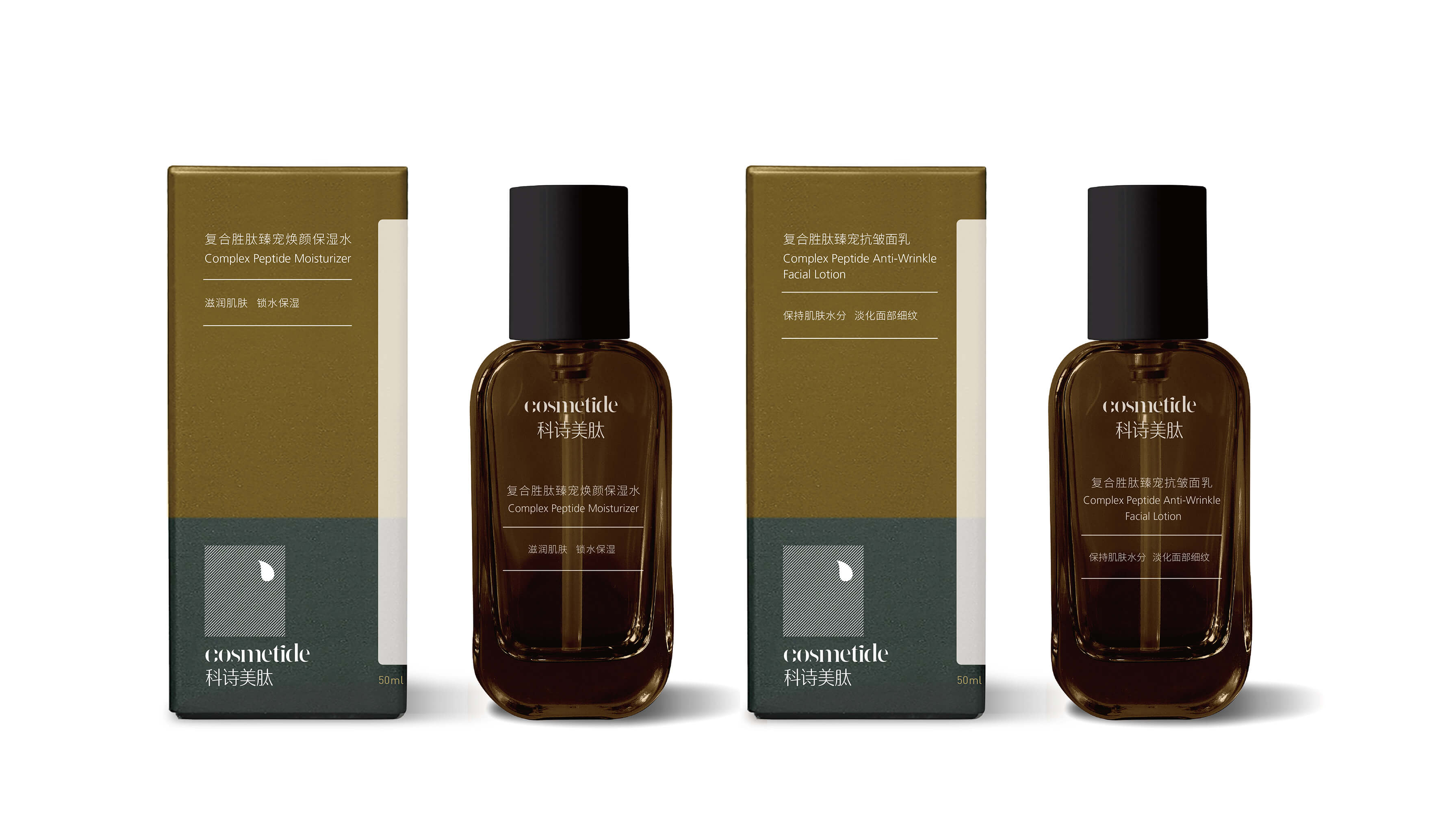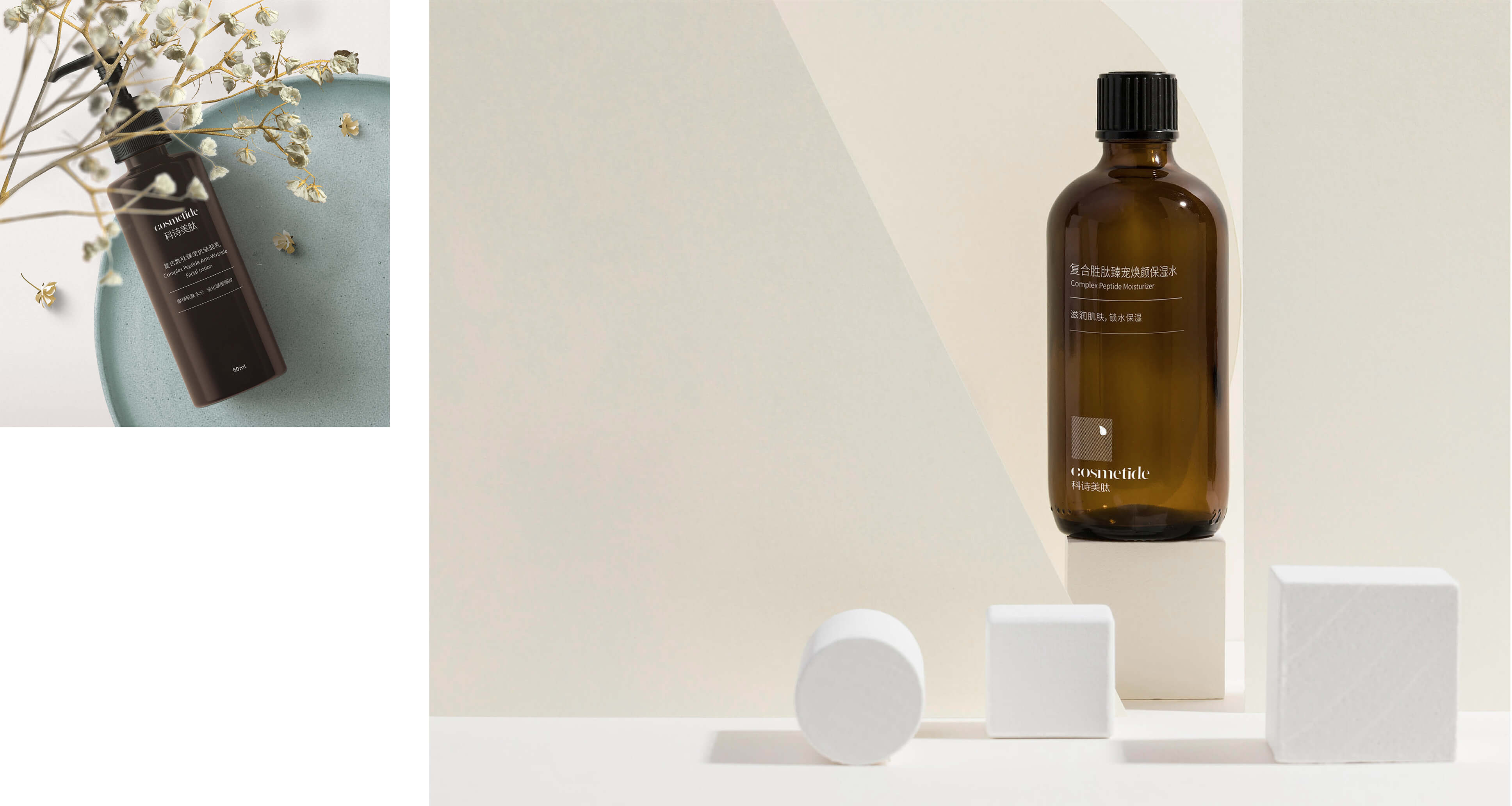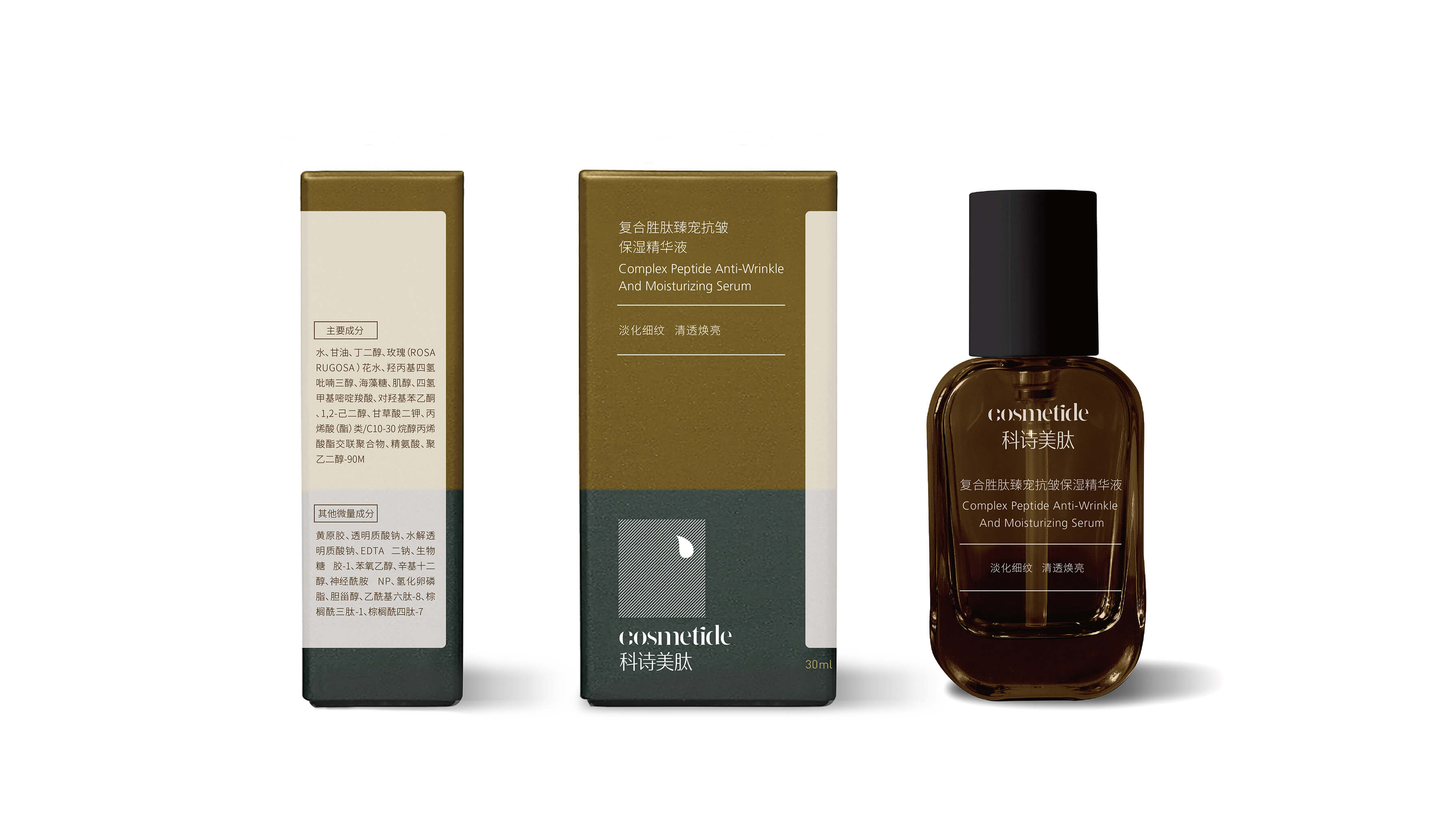 COSMETIDE 護膚品 我負責此護膚品牌的VI和包裝設計,其中LOGO以删繁就简的减法美学,將字型“C”進行精髓簡化,僅保留 右上方如同液態形體的元素,與產品液態形體相呼應,並結合塊狀斜線建構出完整的面,讓整體視覺極簡純粹, 在意象上呈現出些許現代禪的東方感,以此體現出東方品牌的獨特性。
